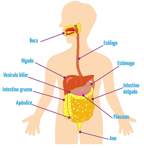 *Transformar los alimentos hasta convertirlos en pequeños elementos llamados nutrientes, para que pasen a la sangre y se distribuyan a todas las células.