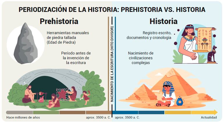 La primera gran división es aquella que divide a la historia de la humanidad en dos grandes períodos: