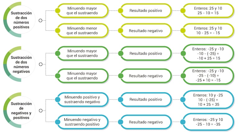 Para calcular el valor de la resta en la sustracción de números enteros, es importante tener en cuenta sus signos, según lo siguiente: