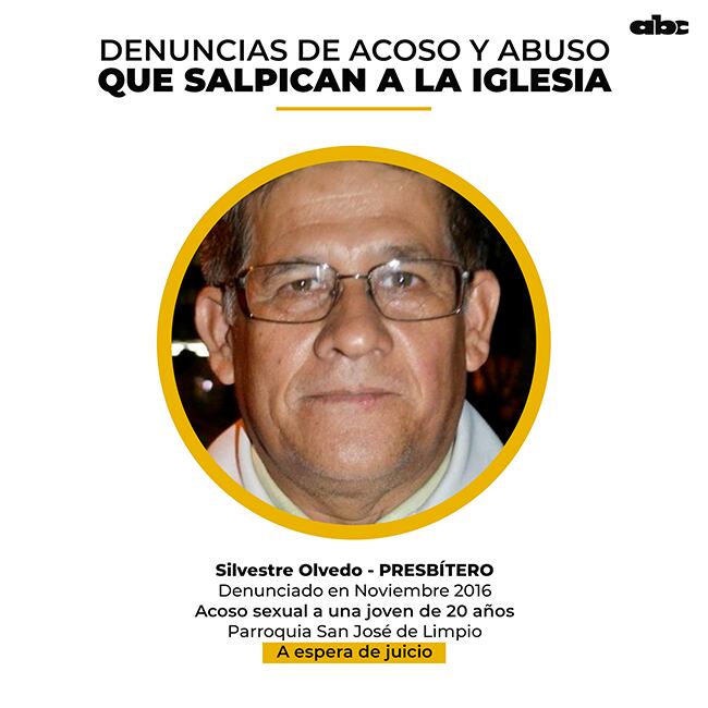 Silvestre Olmedo Lezcano (59) era párroco de Limpio y reconoció, en un “mano a mano” con jóvenes de la Iglesia, que le tocó los pechos a la coordinadora de la Pastoral de la Juventud de esta ciudad. La víctima tenía 20 años. Lo que no sabía el sacerdote es que estos chicos grabaron la conversación y la filtraron a la prensa.