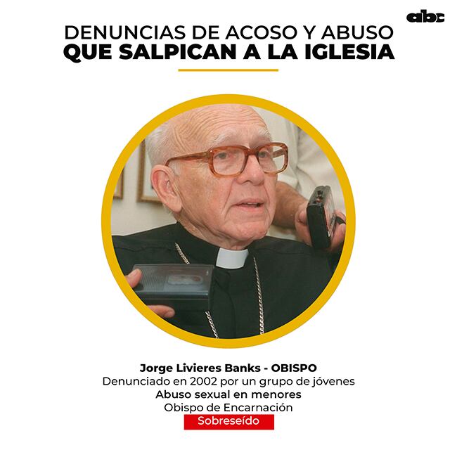 Otras denuncias que salpicaron a sacerdotes de Paraguay no llegaron a juicio oral y público. El más sonado es del 2002, cuando un grupo de jóvenes denunció que fueron victimas de abuso sexual de parte del obispo de Encarnación, Jorge Livieres Banks. Finalmente fue sobreseído por la Fiscalía y falleció el año pasado.