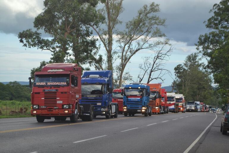 Omombe'u oîha 40 kamiõ cisterna oha'ãrõva Ruta II “Mariscal Estigarribia” omosãsõva paso camiones de gran porte-pe, péva oïgui manifestación omotenondéva umi mba'apohára del volante ombotovéva bitrenes jeike tetãme.