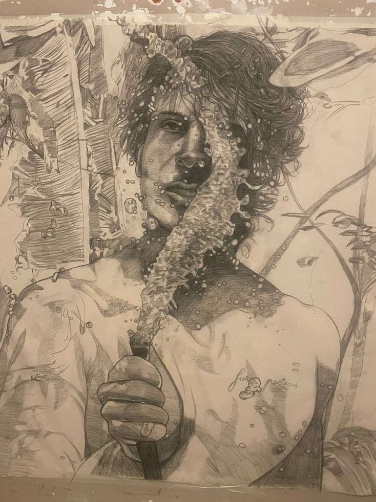 Asimismo, explicó que su mirada particular sobre el cuerpo masculino viene desde su primera clase de dibujo vivo a los 16 años, pasando por los 8 años que dibujó vivo todos los días porque trabajaba como animador 2D en Europa. “Siempre me costó mucho dibujar el cuerpo masculino ya que sentía que mi mirada delataba el deseo en cada trazo que acariciaba la hoja. Me costaba mostrarme a ese nivel”, confesó.