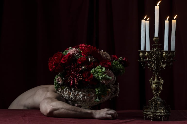 la muestra, que cuenta con la curaduría de Carlos Sosa, estará dividida en dos niveles. En la planta baja del museo, se encontrarán “composiciones fotográficas integradas por objetos personales, elementos domésticos, artículos de fe y alimentos, organizados en escenas donde la luz tenue y el orden aparente remiten a la historia, la opulencia y la decadencia, en diálogo con la presencia del cuerpo y su dimensión simbólica”, detallaron.
