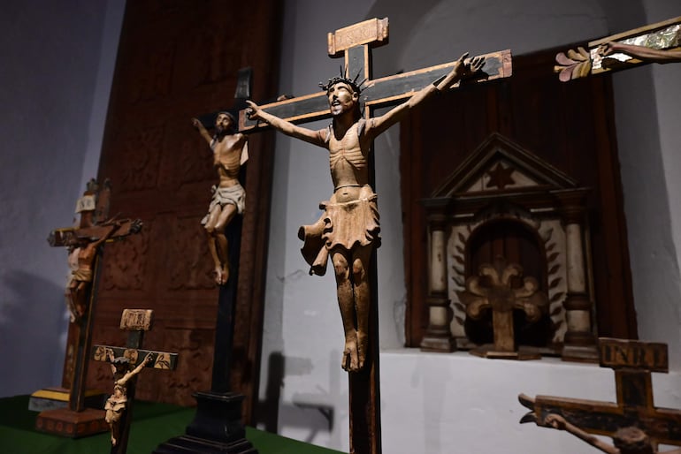 Benjamín Otto, responsable del museo, detalló que la muestra reúne tallas en madera de artesanos paraguayos. “Principalmente lo que ahora estamos exponiendo son crucifijos y también El señor de la Paciencia, el Cristo de la columna, que representan un poco esa Pasión de Cristo”, comentó.