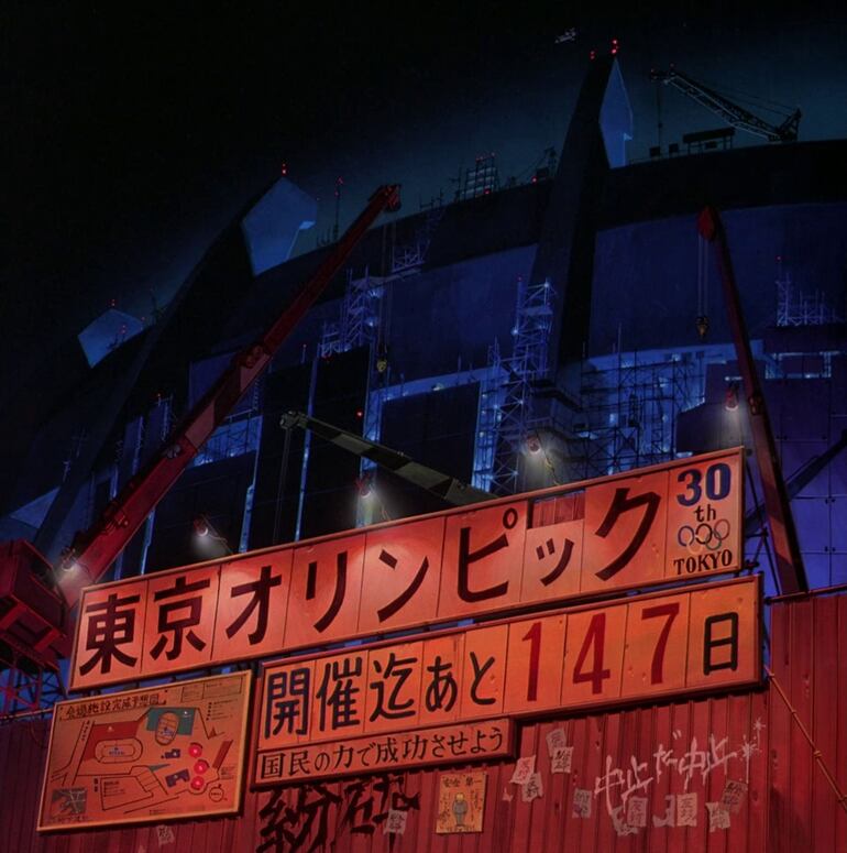 El estadio olímpico en la ficción es de este modo construido en el sitio de la “ciudad vieja” devastada de Tokio, cerca del cráter dejado por el misterioso cataclismo de 1982, alusión transparente a las bombas atómicas lanzadas sobre Hiroshima y Nagasaki en 1945, añade Gaumer.