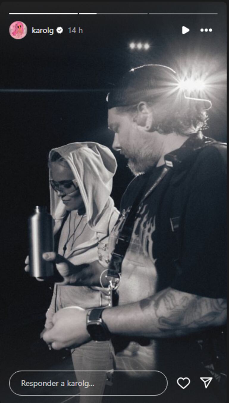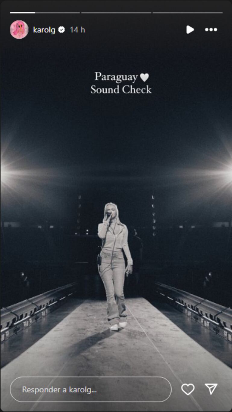 En las historias de su perfil oficial de Instagram compartió algunas fotos de lo que fue la prueba de sonido para el concierto, donde se la ve a ella con un micrófono cantando sola, tapada con una sudadera con capucha y gafas.