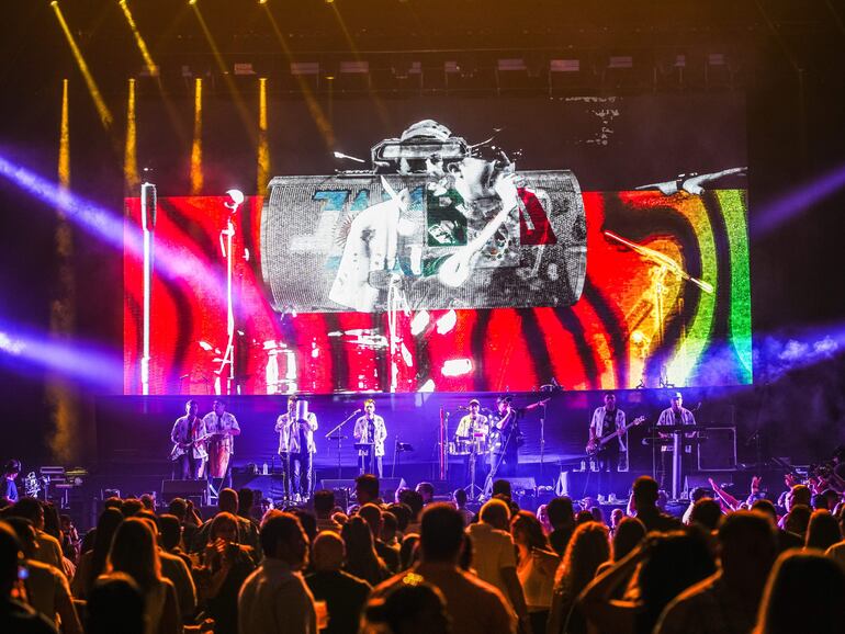 La agrupación mexicana Los Ángeles Azules encabezó el cartel de esta nueva edición del festival Cumbiasónico. Con 17 personas en escena, entre músicos y cantantes, la banda de los hermanos Mejía Avante arrancó su presentación con una “Entrega de amor”.