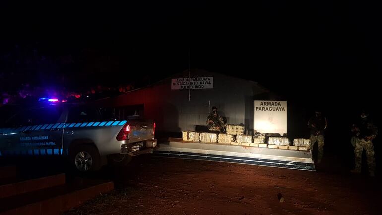 Las evidencias fueron trasladadas al Destacamento Naval Tte. Escumbarti de Hernandarias para el pesaje de la droga antes de ser remitida a la Base Regional de la Secretaría Nacional Antidrogas (Senad) de Ciudad del Este.