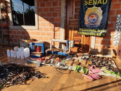 Los antidrogas incautaron un multiprocesador, una balanza de precisión, un horno eléctrico y otros elementos que se utilizan para el procesamiento de la droga. Igualmente, hallaron matrices y pegamentos especiales que servían para ocultar la droga en las plantillas.