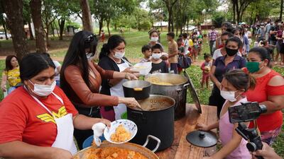 Desde la institución se entregan un promedio de 700 kits de alimentos de 60 kilos cada uno, para unas 120 ollas populares. Cada kits de alimentos contienen arroz, poroto, azúcar, sal, aceite, yerba que se estima dura una semana.