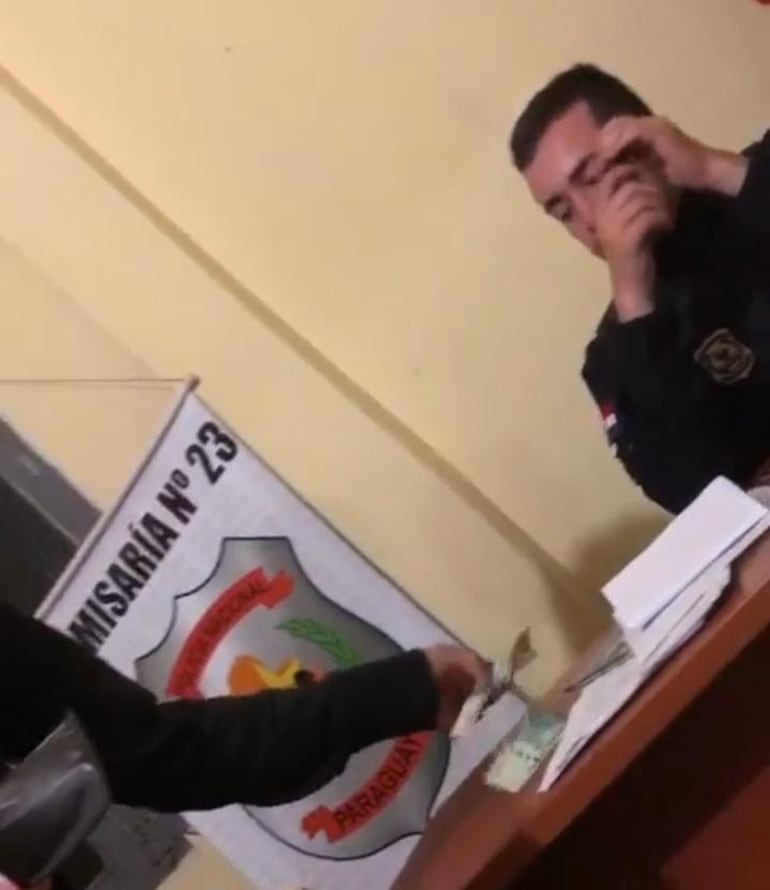 El joven negoció con los uniformados y accedió a pagar una coima de G. 150.000 a cambio de que lo dejasen libre y filmó con su celular el momento de la entrega.