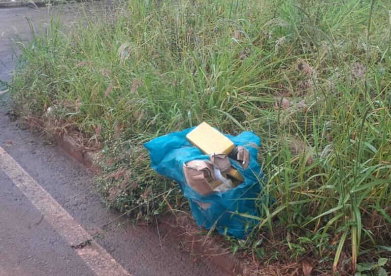 Un transeúnte que pasaba por una calle del km 6,5 dio aviso a la Policía de que una bolsa, que aparentemente contenía marihuana, se encontraba abandonada en plena vía pública. Tras ir hasta el lugar indicado, los agentes contabilizaron 22 panes que estaban en una caja y esta, a su vez, en una bolsa de color azul.