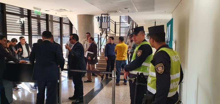 Los jueces Vitalia Duarte, Fabio Aguilar y Serafín González determinaron que el ingreso a la sala de juicio se limite a las partes y trabajadores de prensa debidamente identificados. Las verificaciones se realizan tanto en el acceso al Poder Judicial como también a la sala de juicio.