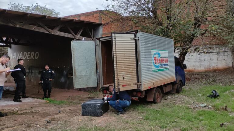 Mientras el rodado y la carga siguieron trayecto hasta el Km 5,5 Monday, donde en un terreno baldío se procedió a realizar el trasbordo de las mercaderías a un furgón Toyota Noah, color blanco.