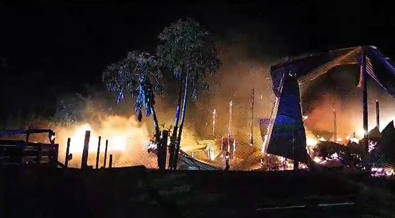 Los intervinientes señalaron que la estructura de madera contribuyó a que el depósito y los alimentos sean consumidos por completo, por tratarse de materiales altamente inflamables.