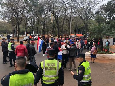 Los detractores del intendente Miguel Prieto Vallejos (YoCreo) se concentraron primeramente en la Plaza de la Paz, luego cruzaron la avenida Pioneros del Este y se manifestaron frente al acceso de la Municipalidad de Ciudad del Este.