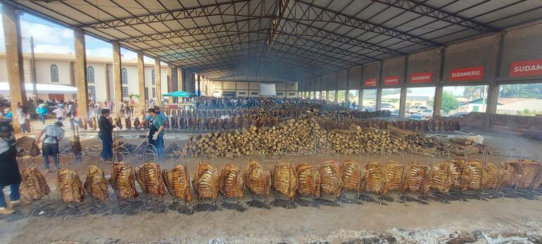 La cocción de los costillares es un verdadero espectáculo. Decenas de costillares son alineadas en varias filas alrededor del fuego, donde permanecen entre ocho a nueve horas a cargo de 45 voluntarios antes de ser servidos a los comensales.