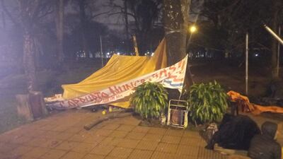 A las 23:30 de anoche, un grupo de cinco personas llegó con cuchillo y botellas de combustible a la plaza de la Paz de Ciudad del Este. Allí comenzaron a cortar las cuerdas y carpas que estaban instaladas en el lugar por manifestantes que exigen cobro de deudas laborales.