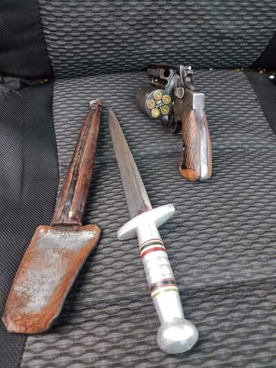 Intervino el fiscal de turno Alberto Torres, quien dispuso la aprehensión del guardia y la incautación de las evidencias como un puñal de 10 centímetros y un revólver calibre 38 mm, marca Taurus.