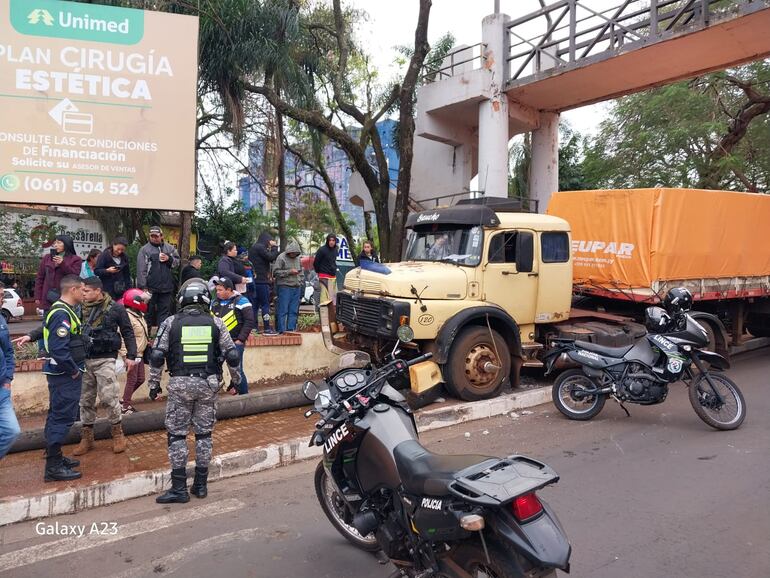 El percance fue protagonizado por un camión de la marca Mercedes Benz modelo 1929, color crema, con chapa AEI-5068 Brasil, con semirremolque marca Randon, con chapa IDE-3428 Brasil.