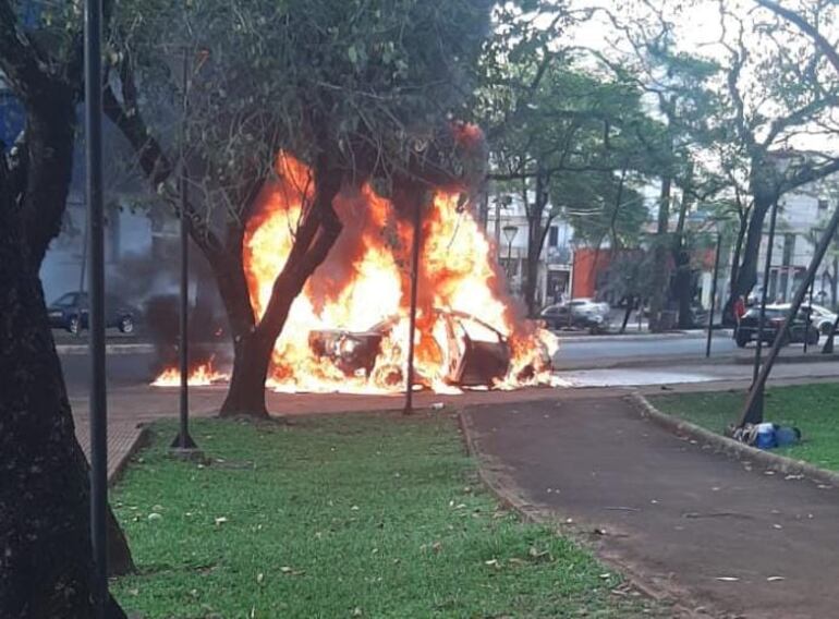 En cuanto al segundo caso, fue reportado esta mañana, aproximadamente a las 06:30, en la concurrida avenida Alejo García y Óscar Rivas Ortellado, cerca del exaeropuerto Alejo García de Ciudad del Este. El incendio afectó a un automóvil Toyota Premio de color blanco, conducido por Holder Yursi Armoa (30 años).