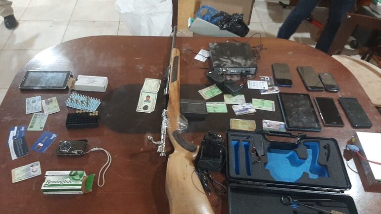 Durante el allanamiento, los policías incautaron un fusil calibre 7.62 que sería el arma homicida, un equipo DVR del circuito cerrado, 8 aparatos celulares y una cámara digital de la marca Samsung.