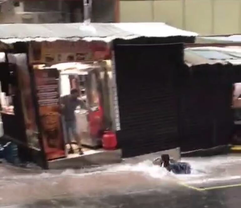 Las imágenes muestran a una joven siendo arrastrada con fuerza por el raudal, sobre la avenida Adrián Jara, entre Regimiento Piribebuy e Ita Ybate.