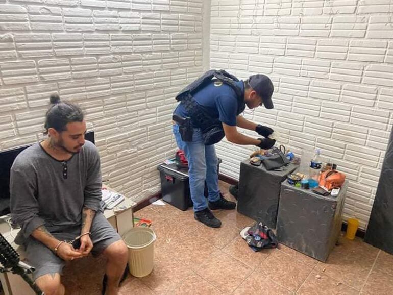 El operativo antidrogas fue encabezado por el fiscal Elvio Aguilera en el edificio Retorno, ubicado en el barrio Catedral de esta capital departamental, a pocos metros del Colegio Árabe y el Centro Educativo Libanés, a los que concurren cientos de jóvenes.