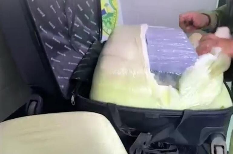 Los agentes realizaban controles en los carriles de ingreso de vehículos, cuando retuvieron un bus internacional que había partido de la Terminal de Ómnibus de Asunción. Durante la inspección hallaron 7 kilogramos de marihuana prensada en una de las maletas.