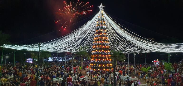 A la cuenta regresiva de diez, la magia de Navidad se apoderó de Ciudad del Este con el encendido de las luces de los diferentes adornos que engalanan el Anfiteatro del Lago de la República, sus alrededores y otros puntos del municipio.