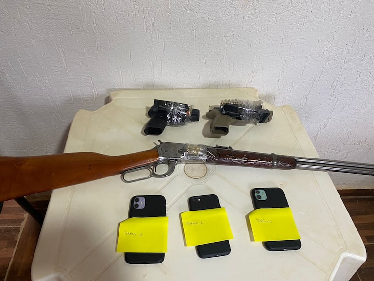 El tercer allanamiento tuvo lugar en una vivienda del barrio Che La Reina, también de Ciudad del Este, donde fue aprehendido Ángel Antonio Flecha Barrios (45). De este lugar se incautaron tres celulares de la marca iPhone, una pistola Taurus calibre 40 mm, un cargador y nueve cartuchos calibre 9 mm.