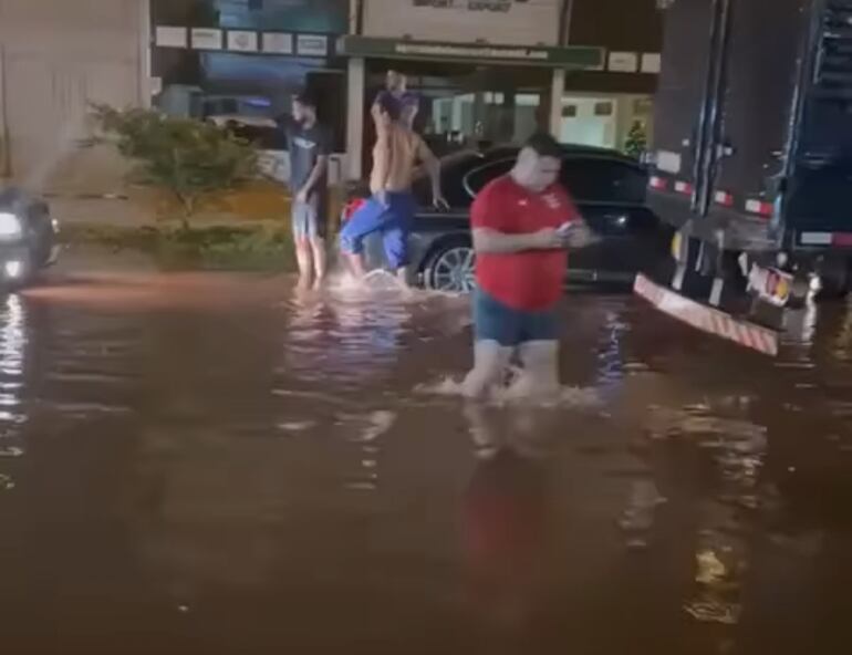 Asimismo, se reportaron raudales en el microcentro esteño, afortunadamente en horario nocturno el movimiento es prácticamente nulo y no se reportan mayores incidentes al respecto. En zona del Km 4, camino a Hernandarias, calles repletas de agua dificultaron el paso de vehículos por momentos.