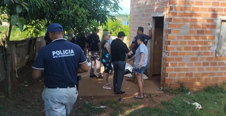 Agentes policiales y la fiscala de turno Carolina Rosa Gadea se encuentran en la escena del crimen para recabar los datos. También el forense del Ministerio Público para la inspección del cuerpo.