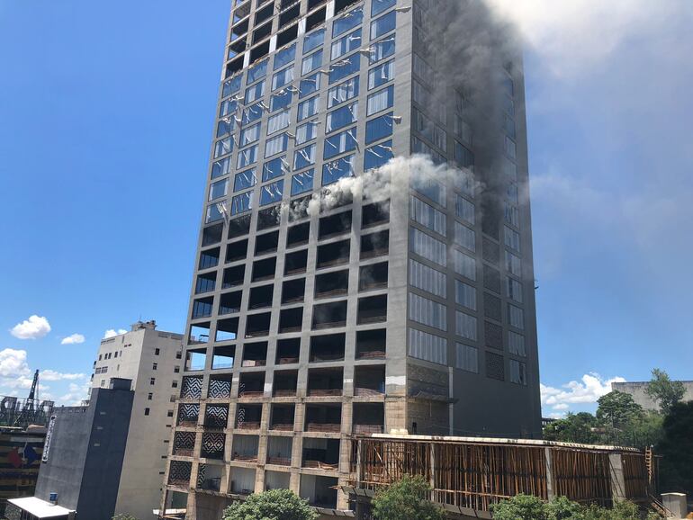 El incendio se inició en el piso 12 del edificio de 25 niveles perteneciente a la empresa Flytec, ubicado sobre la ubicado sobre la calle Eusebio Ayala e Ita Yvate de Ciudad del Este.