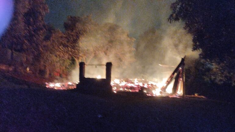 Según el informe del Puesto Policial N° 5, el fuego consumió toda la casa rápidamente, a pesar de los intentos de los vecinos por sofocarlo.