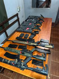 Posteriormente, se procedió a la verificación del rodado y se hallaron en su interior tres escopetas automáticas, calibre 12 mm, de la marca Derya VR70, todas con cargadores (dos cortos y uno largo). Además de cuatro pistolas 9 mm, de las marcas Glok y Kor respectivamente, con cargadores.