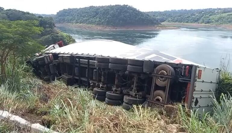 Cuando intentó arreglar, el camión se movió, pisó una de sus piernas, chocó contra una baranda protectora y terminó precipitándose a orillas del río Paraná, según explicó Derlis Maidana, asesor jurídico del Área Naval del Este.
