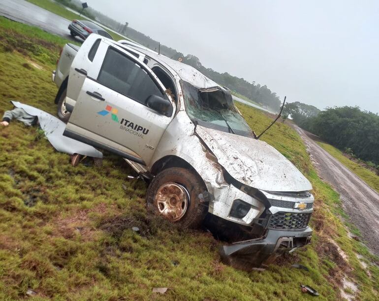 Se trata de una camioneta de la marca Chevrolet S10, con chapa AAKE 237, propiedad de la Itaipú Binacional, conducida por Esteban Martín Caballero (29), quien estaba acompañado por Diego Hernán Martínez (24), ambos domiciliados en Ciudad del Este.