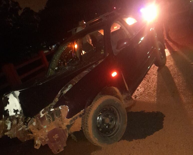 Agentes policiales fueron alertados a través del sistema 911 y al llegar encontraron el automóvil con daños materiales, así como la baranda protectora del puente que conecta esta ciudad con Los Cedrales, en el departamento de Alto Paraná.