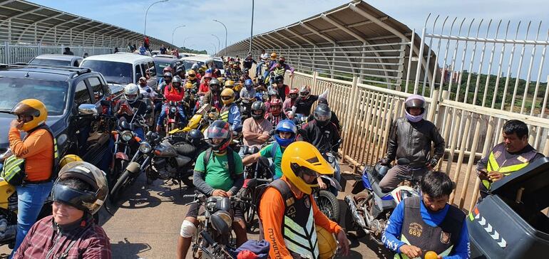 En el material periodístico se pudo ver cómo muchos motociclistas recogen las mercaderías apiladas debajo de una carpa, en la cabecera del puente de Amistad, en el lado paraguayo, a metros de las oficinas de Migraciones y de la Policía Turística.