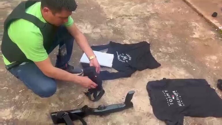 Los intervinientes decomisaron un arma de fuego tipo fusil calibre 762 de fabricación artesanal lustre negro con 12 cartuchos sin percutir y uno percutido, además de una matricula de vehículo con la inscripción Brasil “Vidal” de color blanco.