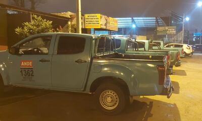 Una “cuadrilla” de camionetas de la Ande, estacionadas frente a un local deportivo, sobre la avenida Perú de Ciudad del Este, llamó la atención de ciudadanos que pasaban por el lugar, al considerar que no se trataba de ningún operativo al que acostumbra a realizar el ente.