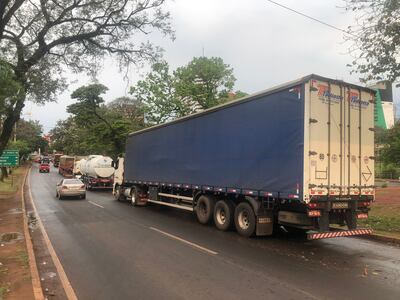 Largas filas de camiones se forman sobre la Ruta PY02 en Ciudad del Este en los últimos días, debido a la lentitud en el cruce fronterizo por el Puente de la Amistad rumbo a Brasil, a consecuencia de los estrictos controles de los funcionarios brasileños asignados a la oficina aduanera.