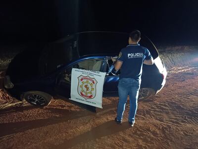 Durante la huida, los sospechosos abandonaron el vehículo Toyota que acababa de hurtar y continuaron la fuga en un automóvil Toyota Runx, color azul, chapa DOA 211.