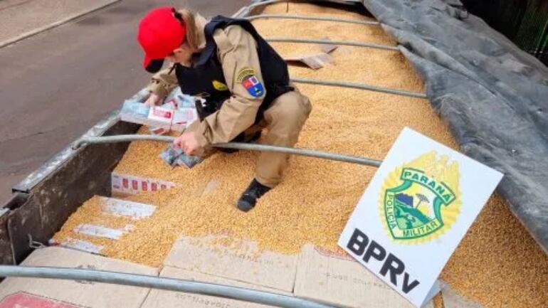 En la madrugada de este jueves, agentes de la Policía Rodoviaria Federal, en el marco del operativo Fuerza Total, abordaron un camión que, a simple vista, transportaba una carga de maíz. La intervención se realizó en la carretera PR-486, en el municipio de Cascavel, Estado de Paraná.