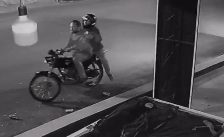 Los propietarios de los locales entregaron a los investigadores las grabaciones de las cámaras de vigilancia, en las cuales se observa al conductor de la motocicleta con el rostro descubierto y a su acompañante con un casco de diseño abierto que no cubre la cara, lo que podría facilitar la identificación de ambos.