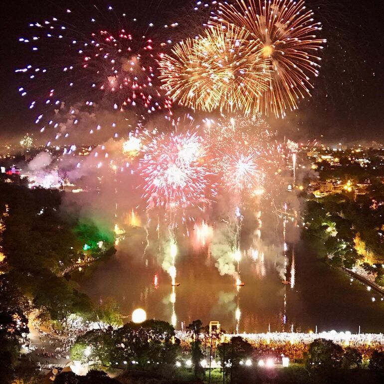 Miles de personas se encontraron en el Lago de la República de Ciudad del Este, donde participaron de la bienvenida del año nuevo con un espectáculo de fuegos artificiales que deslumbró por unos 10 minutos el cielo de esta región fronteriza.