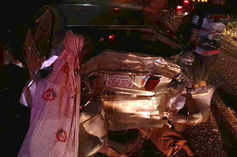 La camioneta chocó contra la parte posterior de un automóvil Toyota, modelo Premio, año 2002, color plateado, con chapa CFJ 379, guiado por Víctor Espínola Cristaldo (61), quien estaba acompañado por Adelaida Beatriz Pavón Correa (48), quien sufrió fractura en las costillas; un adolescente de 13 años, quien sufrió una herida en el rostro; y Aparicio Pavón (96), quien falleció en el lugar a raíz de múltiples lesiones.