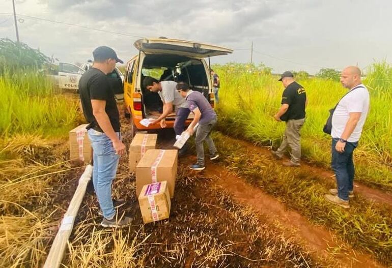 Entonces, los delincuentes descendieron y tomaron como rehenes a las víctimas, para dirigirse hasta el kilómetro 10 Monday, a unos 2 kilómetros de la Ruta PY 02. Allí, se apoderaron de una caja que contenía celulares de alta gama, que transbordaron en un furgón Toyota Noah, y huyeron a la fuga.